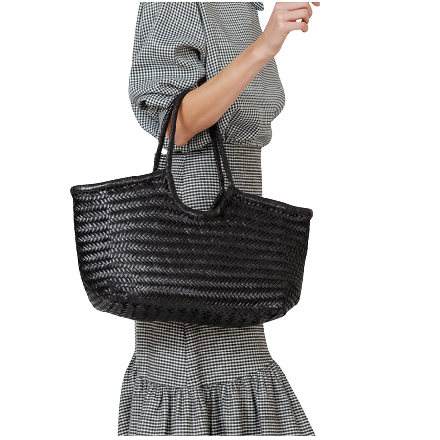 The Nantucket Basket Bag is one of our best selling styles!  Handwoven with soft, buttery leather, we love this roomy, open top tote style as it can be comfortably worn over your shoulder.